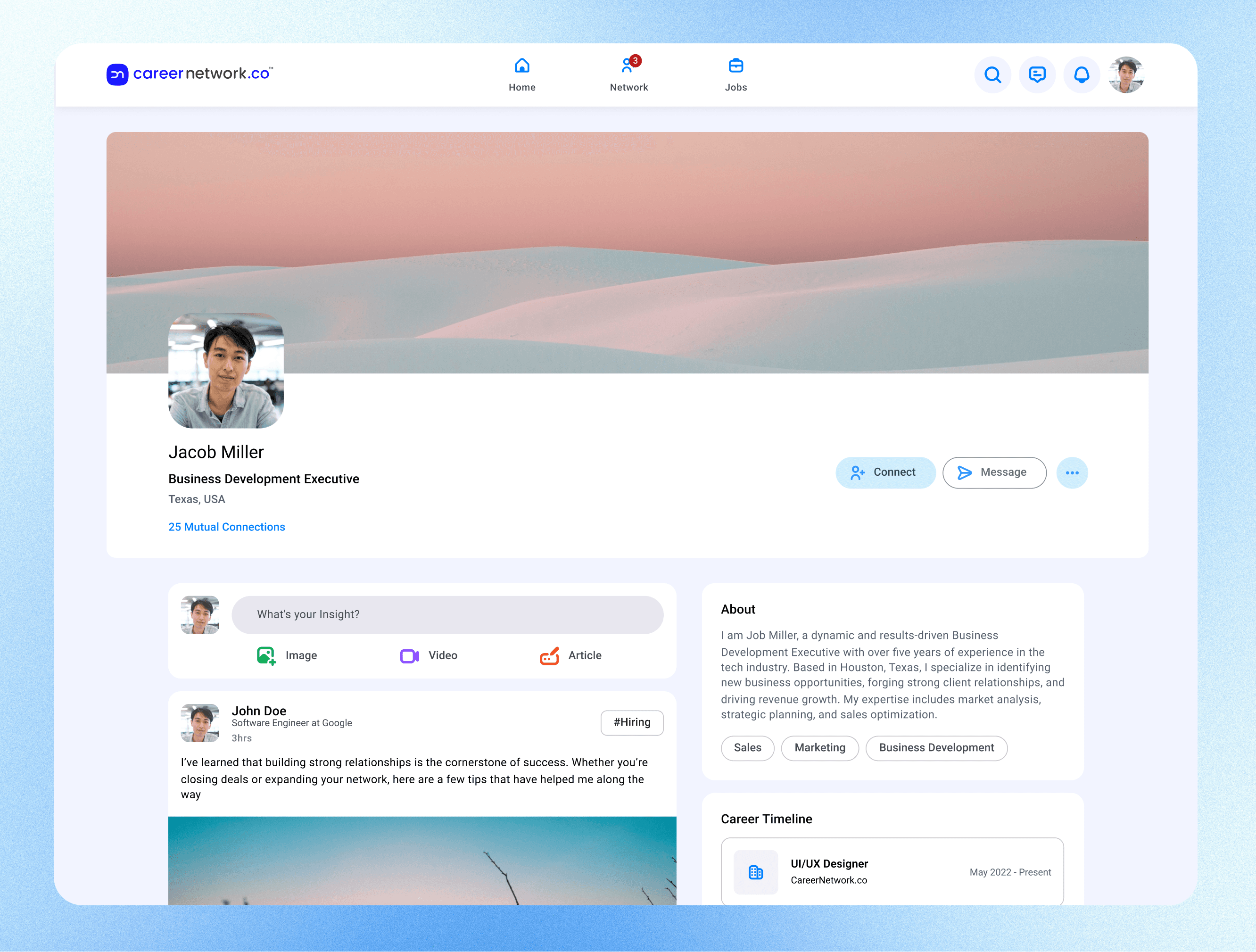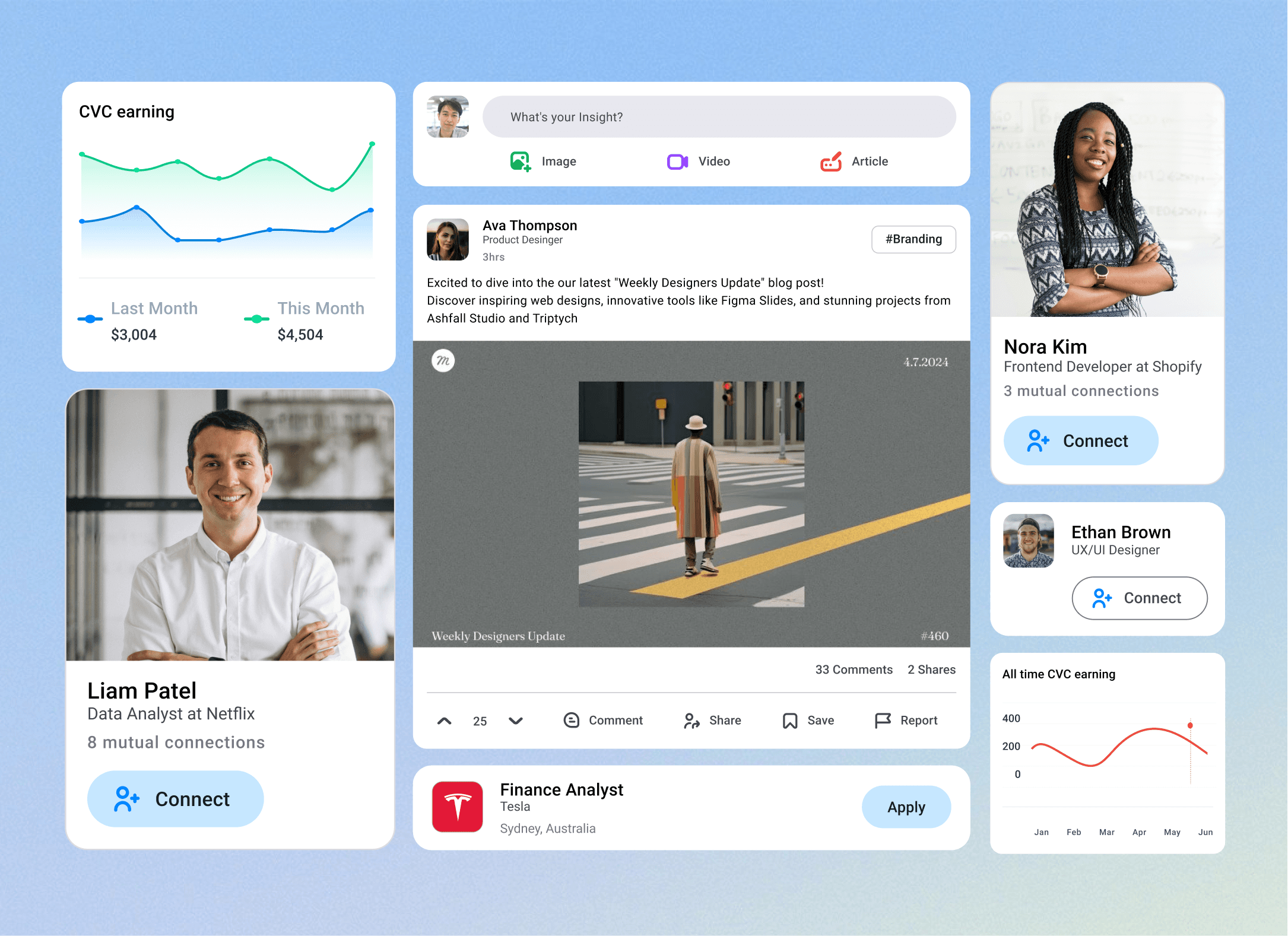 We set out to build a platform that connected credibility, community, and opportunity under one system. Our focus was to design a product ecosystem, not just another networking feature.