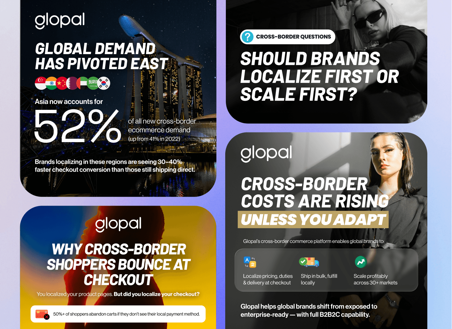 Before 2025, Glopal’s social presence was largely product-centric—informative but underperforming. Despite the brand’s strong position in cross-border commerce, its digital storytelling lacked scalability and data alignment. The content looked professional but failed to convert awareness into measurable engagement.